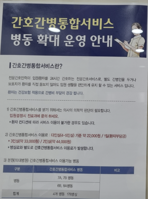 친절한 분위기를 기대하며 간호간병통합병실 입원을 희망하신 분들이 많을 텐데...ㅠㅠ 현실은 그렇지가 않더군요.