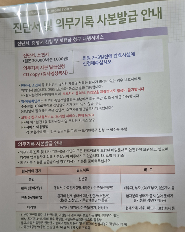 결국 이 날 교수님 회진을 못받고 레지던트 선생님과 수술 상담을 진행하였습니다.