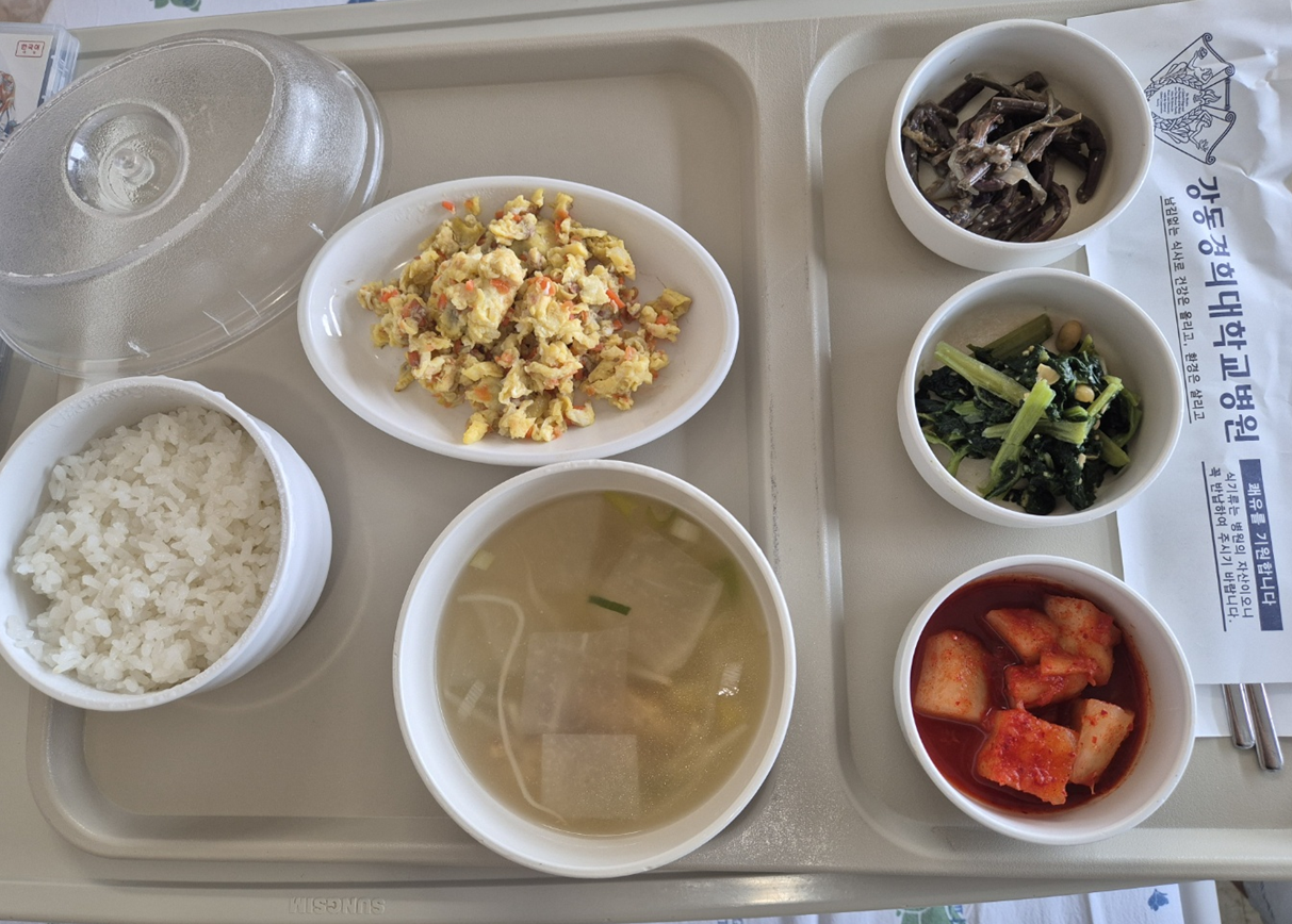 때가 되어서 밥을 주길래 밥도 챙겨먹었습니다. 첫 끼는 맛있다고 생각했는데, 입원 기간 내내 먹으니 확실히 반찬히 부실하고 질리긴 하더라고요ㅠ 레지던트(?) 의사 선생님이 우리 병원 밥 맛 없다!! 하고 진지하게 얘기해주기도 했습니다.
