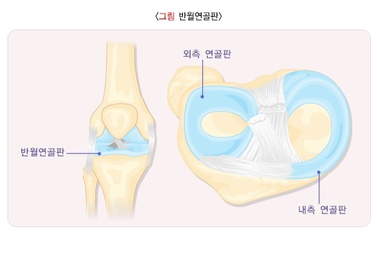 - 두 다리를 쭉 뻗고 섰을 때 다리가 서로 맞닿는 안쪽이 [내측], 바깥쪽이 [외측]입니다. 제가 무릎 카페를 쭉 보니 내측 파열이신 분들이 더 많아 보이는데요, 하중이 내측에 걸리는 경우가 많고 또 내측이 크기가 더 크다보니 그런듯합니다. X자 다리냐 O자 다리냐와 같이 평소의 자세 및 다리의 정렬과도 연관이 있겠죠. 내측 파열은 주로 생활 속의 미끄러짐, 다리의 비틀림과 같은 경우에 파열되는 경우가 많으며 외측 파열의 경우 강도가 센 운동을 할 때 파열되는 경우가 많다고 합니다. 외측 파열인 경우 향후 운동을 하는데 큰 지장이 있을 수 있다고 하니 운동을 좋아하시는 분들이라면 더 잘 관리해주셔야 할 것 같습니다. 내측, 외측과 달리 [뿌리부/기시부] 파열에 대한 이야기도 종종 보이는데요, 말 그대로 연골이 시작하는 뿌리, 끝 부분에 해당하는 부분입니다. 무릎 내측 뿌리부/기시부가 무릎 관절 중 하중을 가장 많이 받는 부분이기도 해서, 뿌리부/기시부 파열은 일반적인 내측/외측 파열보다 훨씬 더 심각하게 생각됩니다. 위치는 음... 하기 그림에서 하늘색 연골판이 시작되는, 하얀색과 인접한 부위로 보시면 됩니다. 빨리 치료하지 않을시 예후가 무척 좋지 않다고 하니 뿌리부/기시부 파열로 진단받으신 분들은 보존치료할 생각하지 마시고 수술을 받으시는게 좋을 것 같습니다. 연골판을 앞에서부터 쭉 쪼개면 전각기시부/전각부/몸체/후각부/후각기시부 이 정도로 나눌 수 있다고 생각해주시면 되겠습니다. 이게 내측이면 내측전각기시부, 내측전각부. 등등.. 외측이면 외측기시부 외측전각부 등등.. 이 되겠죠.