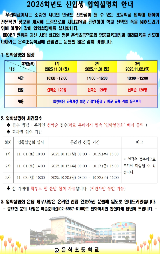입학 설명회를 신청하고 참가하시는게 좋지만,