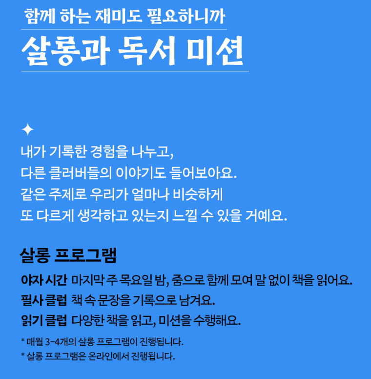 조금 늦은감이 있지만 새로운 북클럽 런칭 소식을 들고 왔습니다. 사실 지난 6월 핫했던 서울국제도서전 즈음 오픈되어 얼리버드 모집을 시작했고 이제는 모집 마감을 앞두고 있으니 상당히 늦은 소식 전달입니다; 잠깐 고민하긴 했지만 지금까지도 제 블로그 조회순 최상위는 북클럽 비교 포스팅이 차지하고 있어, 이 소식을 꼭 포스팅해보아야 할 것 같았습니다.