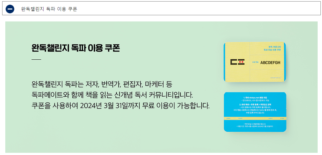 | 제공도서 | 마음산책 신간 5권 | (2022년 기준) 민음사 서적 6권 (세계문학전집/세계시인선/오늘의 젊은 작가 시리즈 중 웰컴도서 3권 + 북클럽 에디션 도서 7종 중 3권) |