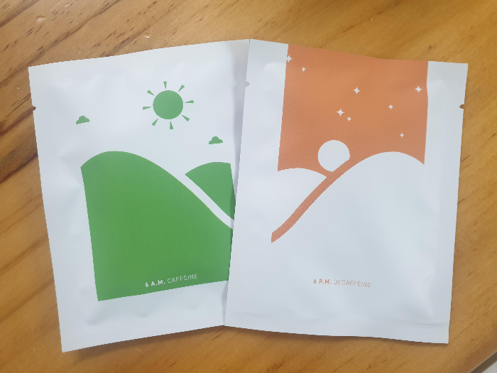 마지막으로 작년에도 마음에 들었던 카페 꼼마의 커피 드립백 2종도 조금 더 자세히 찍어 보았습니다. 6 A.M.과 6 P.M.으로(2AM과 2PM...?) 테마로, 오전 6시 커피는 일반 커피, 오후 6시 커피는 디카페인이라는 재미있는 구성입니다.