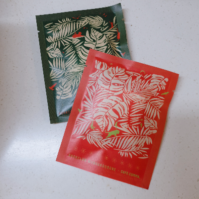 마지막으로 작년에도 마음에 들었던 카페 꼼마의 커피 드립백 2종도 조금 더 자세히 찍어 보았습니다. 6 A.M.과 6 P.M.으로(2AM과 2PM...?) 테마로, 오전 6시 커피는 일반 커피, 오후 6시 커피는 디카페인이라는 재미있는 구성입니다.