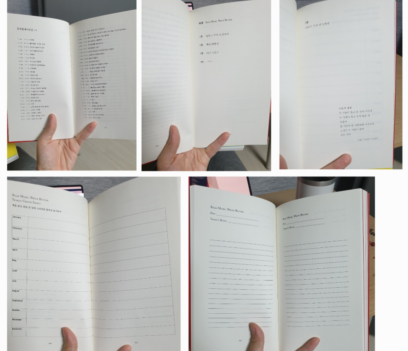 크게 목차 - 월별 독서 계획 - 독서기록장 - 자유노트 - 독서 플레이리스트 적어보기 - 셀프인터뷰 순입니다.